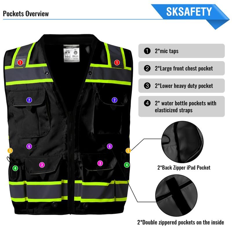 12 Pockets Professional level Safety Vest, Class 2 High Visibility Vest, ANSI/ISEA