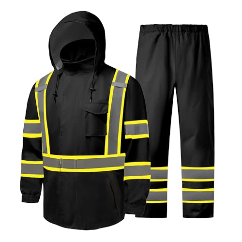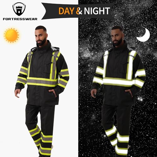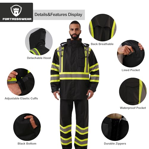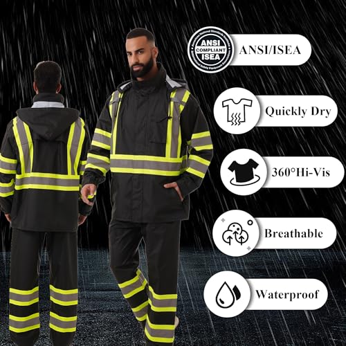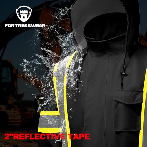 Hi Vis Rain Jackets for Men Reflective Waterproof High Visibility Class 3 Safety Rain Coat with Black Bottom