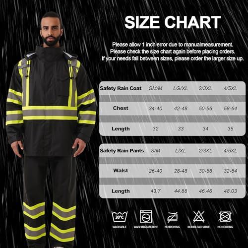 Class 3 High Visibility Rain Jacket: The hi-vis reflective rain suit is made of high-quality 3m reflective material, with a super long distance observability of 600 meters at night, providing 360 degree higher visibility in low light or nighttime environments, effectively protecting users’ nighttime work safety and enjoying your work safely.