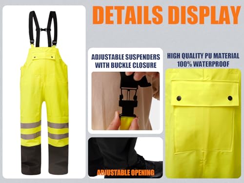 High-Visibility Design: Featuring a color-blocked design and bright colors, the rain jacket and bib offer maximum visibility in low light conditions, making it ideal for outdoor work or fishing.